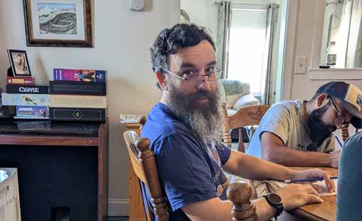 The Gathering IV was a return to sfounder's family lake house. Reviews of the first Lake House Gathering led to increased interest as Iron Fellowship members from Wisconsin and Ohio made the trip out. The Gathering started early, with "slot" zero games and extra restaurant trips. This Gathering famously saw serious commitment to a "bit" as jchapman found out the hard way what happens when you miss a Gathering. It started subtle. We took pictures throughout the weekend, but in every picture we included a copy of a rather famous photo of jchapman. Everyone discussed how long it would be bfore we caught on, as we continually sent the pictures his way. As the weekend progressed, the picts became increasingly less subtle. By the end of the weekend, it had turned into a "Where's Waldo" minigame.